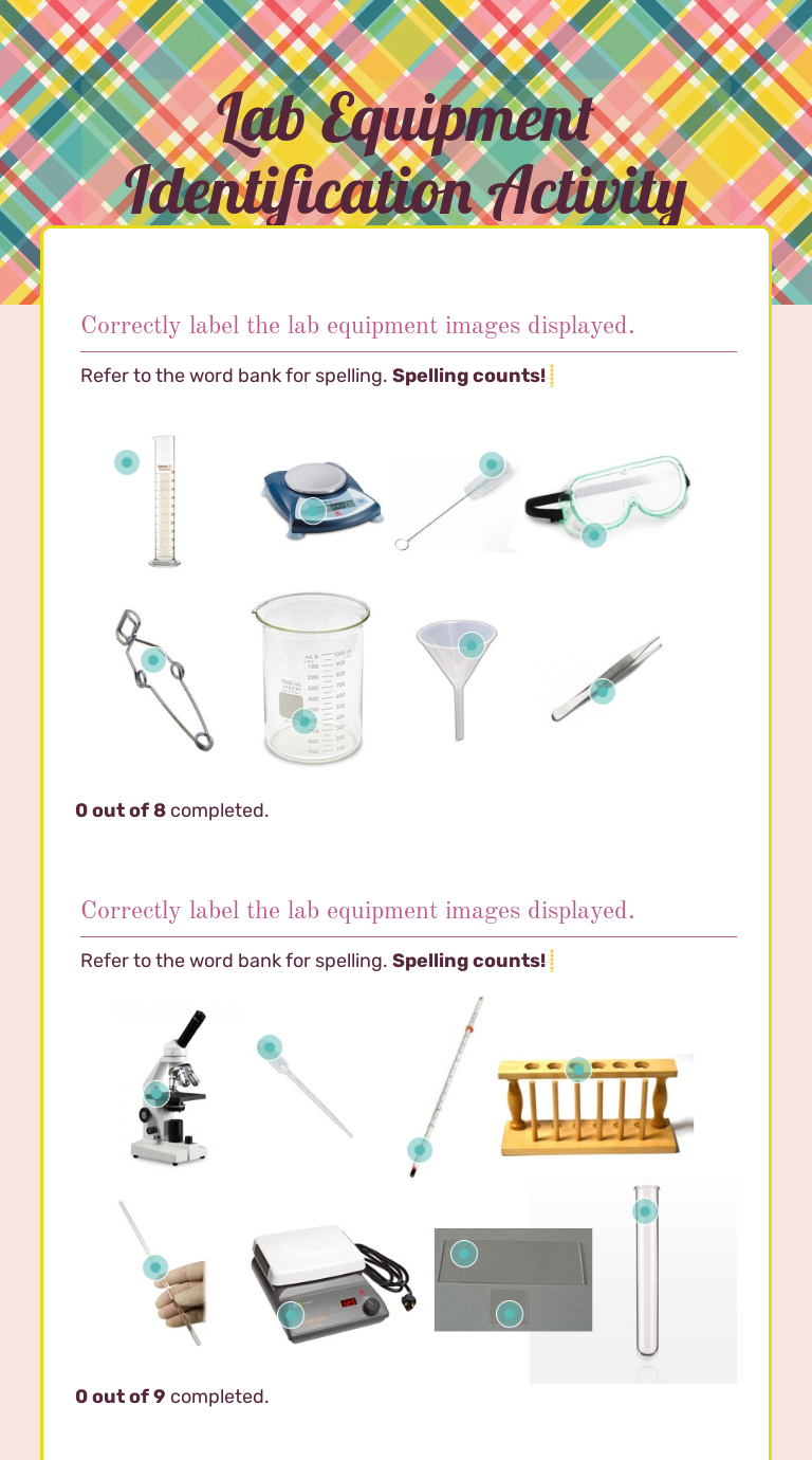 Lab Equipment Identification Worksheets. 36 items! - Amped ... Lab Equipment Identification Worksheets. 36 items! Lab Equipment Identification Worksheets. 36 items! $3.00) (No reviews yet) Write a Review Bulk Pricing: Buy in bulk and save Bulk discount rates ×. Below are the available bulk discount rates for each individual item when you purchase a certain amount ...
