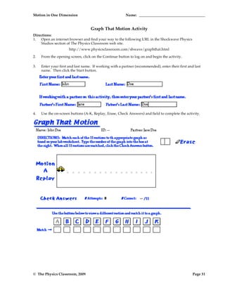 Physics Curriculum at The Physics ... - Physics Classroom Motion in One Dimension The following PDF files represent a collection of classroom-ready Think Sheets pertaining to the topic of Motion in One Dimension. The Think Sheets are synchronized to readings from The Physics Classroom Tutorial and to missions of the Minds On Physics program.