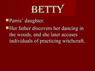 PDF The Crucible Character Analysis THE CRUCIBLE CHARACTER ANALYSIS CHARACTER DESCRIPTION OF CHARACTER MOTIVATION FOR ACTIONS PERSONALITY TRAITS Abigail Williams Betty Parris Reverend Parris Ann Putnam Mary Warren . CHARACTER DESCRIPTION OF CHARACTER ... List the characters from the chart who were in the woods: