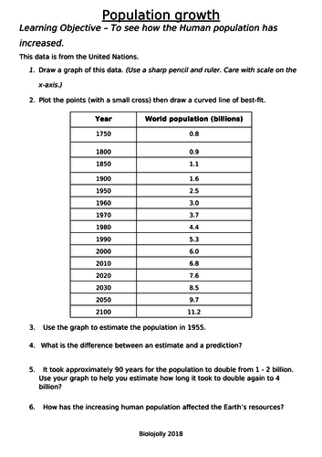 Human population growth - plot graph of U.N. data and answer questions | Teaching Resources