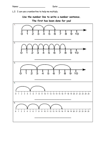 Multiplication using a numberline | Teaching Resources File previews. doc, 271 KB. Children to look at numberline pictures and write a multiplication number sentence to go with it. Tes classic free licence.