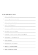 BBC Blue Planet - Frozen Seas: Student Worksheet The seas surrounding the arctic and Antarctic are the coldest and harshest. Very few organisms are able to survive for long periods in these ecosystems. The ones that are able have specific adaptations and behaviors to combat the elements. Key Concepts: Polar seas, arctic, antarctic, adaptations, sea ice, icebergs, pack ice. COMPLETE: Our Planet - Netflix Video Series Worksheets ... Frozen Worlds: 26 question worksheet, 26 word Word Search & 26 word Word Jumble, Word for Word Transcript and all answer keys. Jungles: 28 question worksheet, 43 word Word Search & 43 word Word Jumble, Word for Word Transcript and all answer keys. Coastal Seas: 27 question worksheet, 59 word Word Search & 59 word Word Jumble, Word for Word ... Our Planet_ Frozen Worlds.pdf - Our Planet: Frozen Worlds ... Answer:The algae that lives under the ice contributes to an ecosystem full of different animals. Eventually, the ice covers melt due to warming temperatures and those animals become sources of food for others. In the winter, there would be less algae availability because of less sun (less photosynthesis productivity). 4. BBC Blue Planet - Open Ocean: Student Worksheet Blue Planet - Open Ocean The open ocean is often referred to as a "marine desert." This may seem contradictory to students, who perceive a desert as a hot, dry, sandy ecosystem. However, the biodiversity in the open ocean, away from the flow of nutrients from the coasts, is the lowest for all aquatic ecosystems.