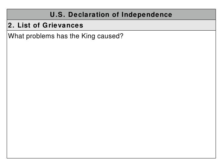 PDF Declaration of independence grievances worksheet Declaration of Independence (1776). The grievances is a section from the Declaration of Independence where the colonists listed their problems with the British government, specifically George III. The United States Declaration of Independence contains 27 grievances against the decisions and actions of George III of Great Britain. PDF Declaration of Independence: Student Worksheet List of Grievances 5. List 5 of the grievances by colonist that are identified in the Declaration of Independence. (Hint: There are a total of twenty-eight.) Some possible answers include that the King: a. Refused to approve laws when they were needed b. Forbid Governors to pass laws until the King approved them, and he ignored these requests ...