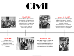Civil Rights Movement Timeline Activity - Students of History The 10 events we cover in this timeline are: Brown v. The Board of Education The Montgomery Bus Boycott The Little Rock Nine and Integration The Greensboro Woolworth's Sit-ins The Freedom Riders The March on Washington Birmingham Baptist Church Bombing The Civil Rights Act of 1964 The Selma to Montgomery Marches The Voting Rights Act