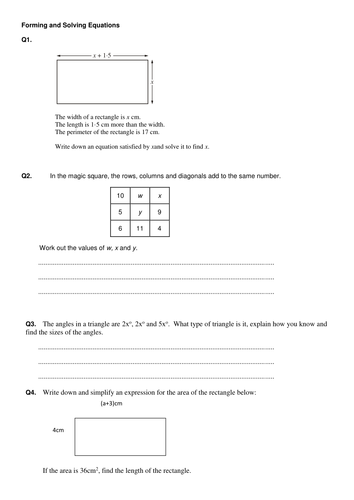 Solving equations with variables on each side worksheet. Solving Equations with Variables on Each Side worksheet Solving Equations with Variables on Each Side Practice on solving equations with variables on both sides. ID: 2386719 Language: English School subject: Math Grade/level: 6-8 ... More Equations interactive worksheets. Multi-Step Equation Test by mylesm0820: 7th One step equations +-by DaneliaMartinez: STAAR Math Drag-Drop Equation WS Solving Equations with Variables on Both Sides Worksheet with Answer Simplify both sides. 2 - 2x + 5x = 3x + 3. 2 + 3x = 3x + 3. Subtract 3x from each side. 2 = 3. The above result is false. Because 2 is not equal to 3. Because the result we get at the last step is false, the given equation has no solution. Apart from the stuff given above, if you need any other stuff in math, please use our google custom search ... Name________________________ all by itself on one side of the equation, and then get the integers (numbers) alone on the other side of the equation. Examples: 5x =2x+ 48 (subtract 2x from both sides) 5x+ 12 = 2x+ 36 (subtract 2x from both sides) Solving Equations with Variables on Both Sides - MathVine.com Solving an equation with a single variable just means putting the variable on one side and the numbers on the other. If you have an equation with variables on both sides, you will need to move the terms around, so that you have both variables on one side, and all the numbers on the other. ... Variables on Both Sides Worksheet 1. Download PDF.